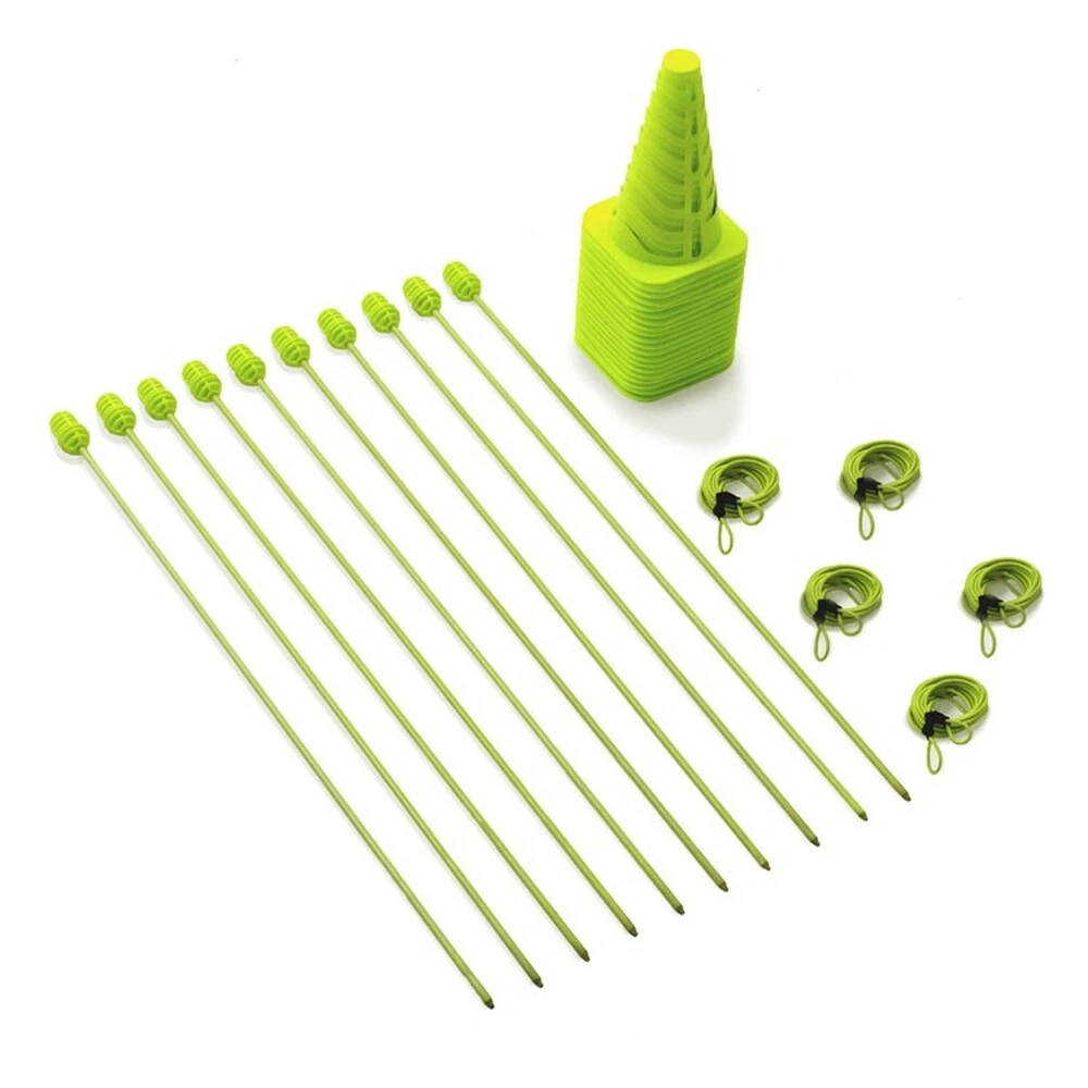 Součástí dodávky je 5 elastických provazů, které v kombinaci se slalomovými tyčemi vytvoří "síť" např. na nohejbal nebo je možné tyče s provazy použít jako bariéry pro ohraničení určitého prostoru. Spojení tyčí s provazem vytvoří i jednoduchou fotbalovou branku.