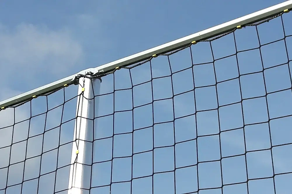 - Pevná fixace: Systém využívá horní příčné vzpěry (traverzy) mezi každým sloupem, což zabraňuje prověšování sítě.